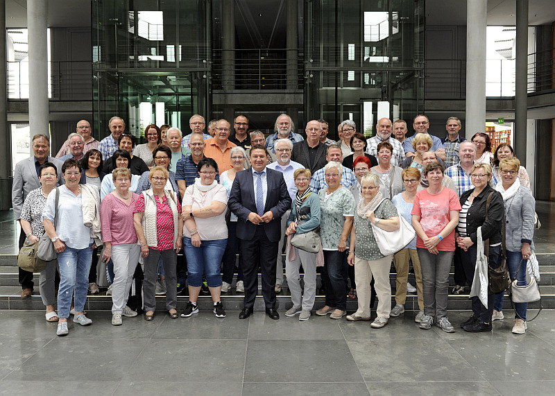 Im Paul-Löbe-Haus, wo die Gruppenaufnahme entstand, traf die Reisegruppe im Anschluss an eine Info-Veranstaltung auch mit dem hiesigen SPD-Wahlkreisabgeordneten Marcus Held zusammen, der seine Landsleute aus Rheinhessen herzlich begrüßte und die komplexen Abläufe in der Abgeordnetenzentrale erklärte. Zum Besuchsprogramm während des